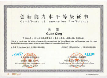 認(rèn)證考試形式:在校學(xué)生參加OSTA《創(chuàng)新能力水平等級證書》取證考試,無需考前按等級報名,只要按規(guī)定繳費后,即可參加全國統(tǒng)一命題、統(tǒng)一考務(wù)管理的考試,并根據(jù)合格考生的成績(標(biāo)準(zhǔn)為:初級50~69分、中級70~89分、高級90分以上),分別由人社部鑒定中心和人社部培訓(xùn)中心聯(lián)合頒發(fā)相應(yīng)級別(初、中、高級)的OSTA《創(chuàng)新能力水平等級證書》。