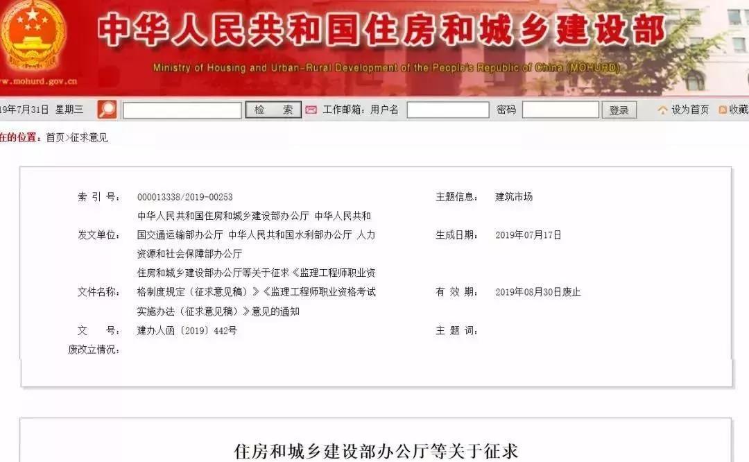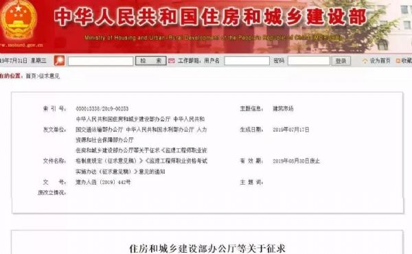 近日,住房和城鄉(xiāng)建設部辦公廳、人力資源和社會保障部辦公廳、交通運輸部辦公廳、水利部辦公廳聯(lián)合下發(fā)《監(jiān)理工程師職業(yè)資格制度規(guī)定(征求意見稿)》和《監(jiān)理工程師職業(yè)資格考試實施辦法(征求意見稿)》。