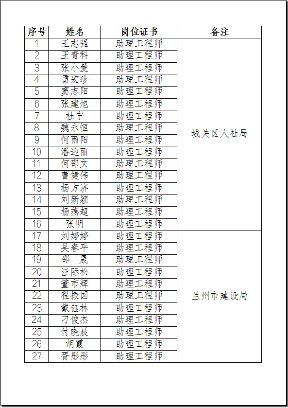 根據(jù)蘭州市職稱改革領(lǐng)導(dǎo)小組辦公室等管理規(guī)定,蘭州市建設(shè)工程專業(yè)中級(jí)職稱評審委員會(huì)評審,蘭州市住房和城鄉(xiāng)建設(shè)局發(fā)文,甘肅省人力資源服務(wù)有限公司報(bào)送。凡通過評審合格者,獲得初級(jí)助理工程師職業(yè)資格證。