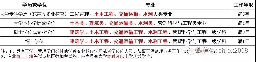 具有工程技術或工程經(jīng)濟專業(yè)大專以上(含大專)學歷,并符合下列條件之一者,可申請參加監(jiān)理工程師執(zhí)業(yè)資格考試。
