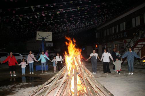 之后,大家去了牛頭寺,牛頭寺,原名任頭山。據(jù)傳,唐代有一農(nóng)家耕牛失圈,連日來四處尋覓無蹤無影,后來在懸崖絕壁的任頭山頂峰找見這頭母牛,并產(chǎn)一牛犢,被人們傳為神牛。于是便在這峰頂之上建起由前殿、后殿、中殿、叁門、伙房組成的寺廟,更名為牛頭寺。牛頭寺歷千載歲月,經(jīng)百代滄桑,幾多崢嶸,幾多輝煌。參觀完牛頭寺,大家去了大草坡農(nóng)家樂,劉愛芳董事長(zhǎng)給大家安排了豐盛的晚餐以及篝火晚會(huì),篝火晚會(huì)不僅讓大家放松心情,緩解壓力還可以將大家的熱情推至最高點(diǎn),在篝火氛圍的渲染下,大家唱歌跳舞,放松身心,高興極了。增進(jìn)了大家的感情。